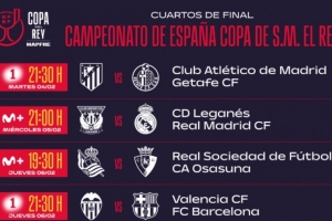 體育資訊1月21日訊 西班牙國王杯四分之一決賽賽程時間出爐,皇馬和巴薩將分別在2月6日和7日出戰(zhàn)。