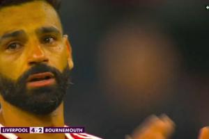 薩拉赫站在場內(nèi),對著球迷們長時間鼓掌,鏡頭給到他已經(jīng)滿臉淚水。