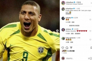 理查利森賽后更新社媒動態(tài),曬出將身穿巴西9號的阿福頭大羅P成自己的照片,配文:“那么離世界杯還有不到一年了,對吧!”