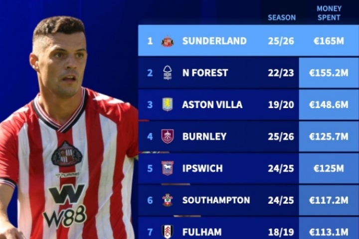 體育資訊08月18日訊 英超第1輪,“黑貓”桑德蘭3-0擊敗西漢姆,取得回歸英超首勝。德轉(zhuǎn)官方曬出數(shù)據(jù),桑德蘭今夏花費(fèi)1.65億歐,成為歷史上花費(fèi)最多的英超升班馬。