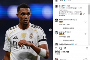 阿諾德此役為皇馬首發(fā)出戰(zhàn),上演西甲首秀,賽后他在社交媒體上慶祝勝利:“在我的新主場踢球感覺太棒了,勝利是開啟新賽季的完美方式?!?/p>