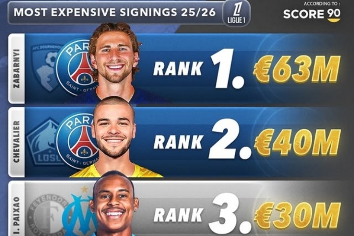 1、扎巴爾尼,伯恩茅斯→巴黎,6300萬歐