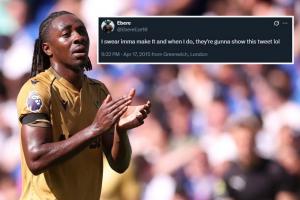 太陽報表示,16歲的埃澤當(dāng)時剛剛被米爾沃爾解約,在2015年4月他發(fā)布了這條社媒:我發(fā)誓我一定會成功的,等我成功了,他們肯定會把這條推文找出來的,哈哈。