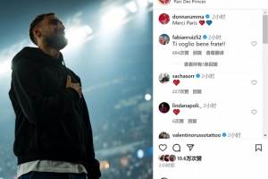 巴黎門將多納魯馬繼續(xù)缺席比賽名單,他在賽后向球迷致意,疑似告別。多納魯馬社媒曬出照片,配文:“感謝巴黎????”
