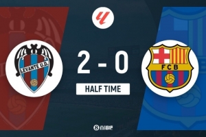 半場(chǎng)結(jié)束,巴薩暫0-2萊萬特。