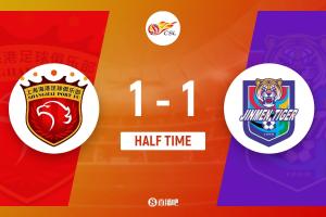 上半場傷停補時3分鐘,半場結(jié)束,上海海港暫1-1天津津門虎。