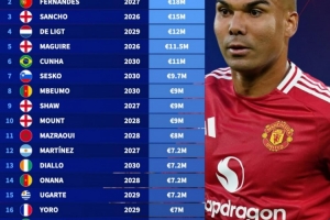 體育資訊8月24日訊 德轉(zhuǎn)盤點了曼聯(lián)球員年薪榜單,其中卡塞米羅2100萬歐居首,桑喬1500萬歐第三,具體如下(合同到期時間+年薪):