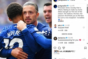 本場比賽埃弗頓新援格拉利什首發(fā)出戰(zhàn)送出兩次助攻,賽后也當(dāng)選英超官方球迷票選全場最佳。格拉利什在社媒曬出與隊(duì)友慶祝的照片,配文寫道:“這是多棒的一個(gè)周日!完成主場首秀并且取得賽季首勝的感覺太好了!這座球場、這里的球迷們、這里的激情!感謝球迷們對我的歡迎,真的難以置信!”