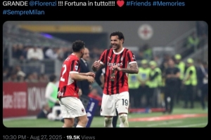 弗洛倫齊的前隊友特奧更新社媒,曬出兩人共同效力米蘭時的賽場合照,為他送上祝福。