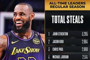本場比賽截至發(fā)稿,詹姆斯已經(jīng)拿到1次搶斷,他的生涯搶斷數(shù)(2308)就此超越皮蓬(2307),獨(dú)享歷史第七!
