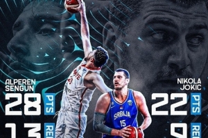 在歐錦賽乏味的小組賽征程中,今天凌晨終于又出現(xiàn)了一場拳拳到肉的比賽:此前都4場全勝的塞爾維亞和土耳其在小組賽收官戰(zhàn)相遇,而約基奇和申京的直接對位更是成為了比賽的最大看點。