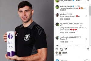 馬丁內(nèi)斯憑借對陣諾丁漢森林的神撲,獲得英超12月最佳撲救獎(jiǎng),他在社交媒體上曬出自己手拿獎(jiǎng)杯的照片,配文:“感謝大家的投票?!?/p>