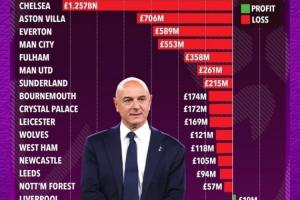 【盈利第一】英超俱樂(lè)部在列維時(shí)代的盈虧榜:熱刺盈利1.67億鎊,排名英超第一!??