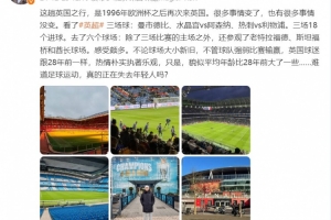 體育資訊12月25日訊?著名足球評論員黃健翔發(fā)文總結了英國之旅,稱英國球迷跟28年前一樣,熱情樸實執(zhí)著樂觀。