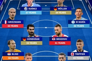 中場:格列茲曼(法國,33歲)、京多安(德國,33歲)、布羅佐維奇(克羅地亞,31歲)、迪馬利亞(阿根廷,36歲)