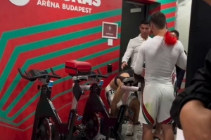 C羅以39球成為世預(yù)賽歷史射手王,賽后索博斯洛伊找到C羅,希望與自己的偶像互換球衣。