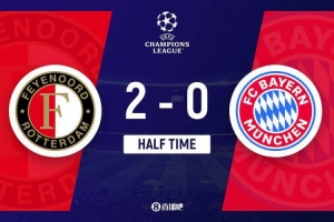 半場結(jié)束,拜仁在0-2費耶諾德。