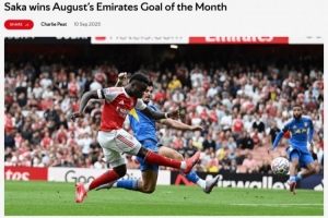 體育資訊9月11日訊 阿森納官方消息,薩卡對陣利茲聯(lián)的抽射破門當選8月隊內最佳進球。