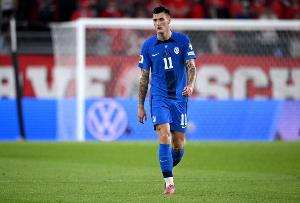 9月國際比賽日兩場比賽,斯洛文尼亞分別2-2戰(zhàn)平瑞典、0-3不敵瑞士,舍什科打滿180分鐘,但兩場比賽中僅1次射正。