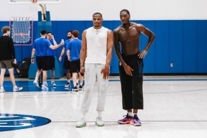 體育資訊9月12日訊 今日威少再次回到母校UCLA訓(xùn)練,現(xiàn)在效力于UCLA小埃里克-戴利更新IG曬出了與威少的訓(xùn)練照。