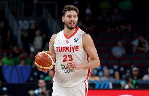 上半場(chǎng)比賽,土耳其中鋒申京出戰(zhàn)18分45秒,投籃11中2,三分1中0,罰球2中1,得到5分9籃板6助攻2搶斷1蓋帽。