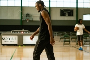 在訓(xùn)練結(jié)束后,馬克西還嘗試了大風(fēng)車和胯下?lián)Q手扣籃。