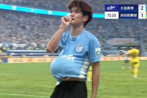 體育資訊9月15日訊 大連英博本輪2-1擊敗深圳新鵬城,劉祝潤(rùn)進(jìn)球后做出將球放進(jìn)懷里以及吸手指的慶祝動(dòng)作,他賽后表示自己老婆懷孕了。