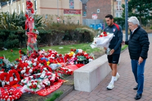 塞雷佐和科克代表馬競(jìng)俱樂(lè)部,為若塔獻(xiàn)上了一束紅白相間的鮮花。