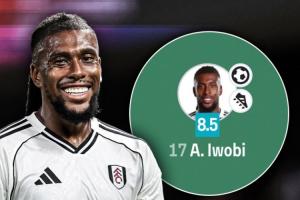 18分鐘后,伊沃比前場抓住機會打入一球?qū)⒈确职馄健S诌^了2分鐘后,他以一腳精妙的直塞穿透對方防線助攻哈里-威爾遜反超。最終富勒姆3-1順利拿下勝利。伊沃比獲評全場最高的8.5分。