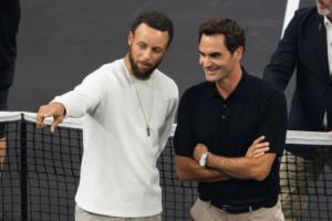 他與費德勒以及參賽選手們進行了合影,還拋硬幣為比賽“開球”。