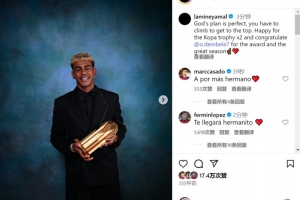 體育資訊9月23日訊 亞馬爾更新社媒動(dòng)態(tài),慶祝獲得科帕獎(jiǎng),并祝賀登貝萊斬獲金球獎(jiǎng)。