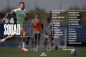 體育資訊9月26日訊 北京時(shí)間明天晚上22點(diǎn)15分,皇馬將在西甲第7輪比賽中客場對陣馬競,皇馬公布了此役的球員名單,呂迪格、阿諾德、門迪繼續(xù)缺席。