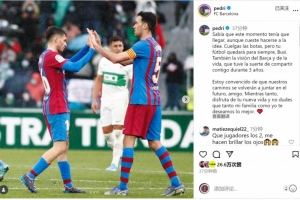 體育資訊9月27日訊 布斯克茨宣布本賽季結(jié)束后退役,巴薩中場佩德里社媒發(fā)文,為他送上祝福。