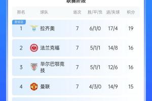 本賽季歐聯(lián)杯,曼聯(lián)開局三連平排在第21名,但如今四連勝升至第四名。