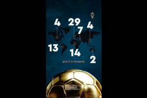 在總計100位評委中,有73人將首票投給了登貝萊,以下為各大洲具體的票數(shù)分布: