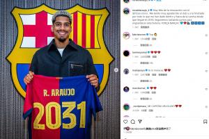 體育資訊1月24日訊 巴薩官方宣布與隊(duì)內(nèi)中衛(wèi)阿勞霍續(xù)約至2031年,阿勞霍社媒發(fā)文慶祝續(xù)約。