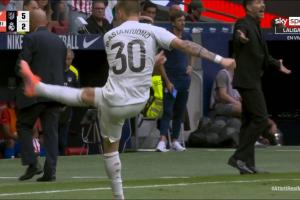 終場前,馬斯坦托諾被斷球后反搶拉人犯規(guī),往回走的馬斯坦托諾被場外來球砸中,隨后他一腳爆射將球踢回場邊,引發(fā)馬競球員和球迷的不滿,雙方在最后時刻爆發(fā)沖突,主裁判也當(dāng)即向馬斯坦托諾出示黃牌予以警告。