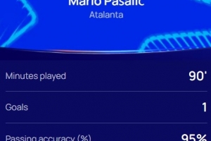 本場(chǎng)比賽帕薩利奇打進(jìn)絕殺,全場(chǎng)跑動(dòng)距離11.3km,傳球成功率95%,賽后他也當(dāng)選歐冠官方本場(chǎng)最佳球員。