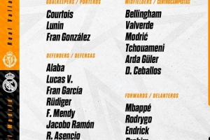 體育資訊1月24日訊 皇馬公布了本周西甲客場對陣巴拉多德利的大名單,維尼修斯繼續(xù)因?yàn)橥Y愒蚶^續(xù)缺席。