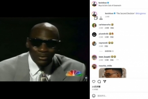 詹姆斯的好基友凱文-樂(lè)福更新IG曬出喬丹的演講視頻,并打趣詹姆斯:“決定二”。