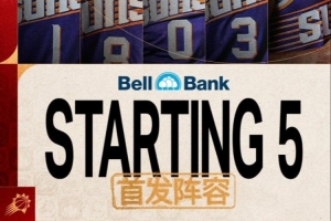 賽前太陽官方公布首發(fā)陣容:布克、阿倫、鄧恩、狄龍、伊戈達(dá)羅,并在圖中配上了中文“首發(fā)陣容的字樣”。