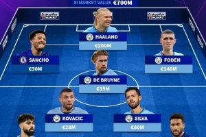 德轉(zhuǎn)球迷票選曼城+切爾西陣容(總價7億歐)