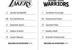 湖人:里夫斯、克內(nèi)克特、八村塁、范德比爾特、艾頓;