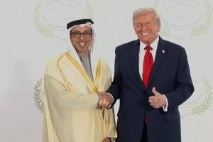 體育資訊10月14日訊 美國(guó)總統(tǒng)特朗普會(huì)面了阿聯(lián)酋副總理曼蘇爾,特朗普與其握手時(shí)笑容滿面:“非常多的現(xiàn)金,無限的現(xiàn)金,非常好的人?!?/p>
