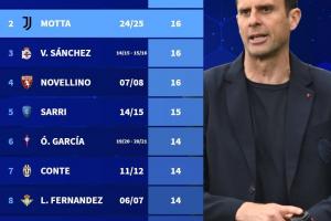 德轉(zhuǎn)盤點(diǎn)了自2000年以來,五大聯(lián)賽球隊(duì)主帥在執(zhí)教球隊(duì)前30場(chǎng)比賽平局場(chǎng)次紀(jì)錄,其中莫塔以16平居次席,以下為具體榜單: