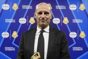 體育資訊10月25日訊 意甲官方曬照,米蘭主帥阿萊格里在米蘭對陣比薩賽前領取了九月最佳教練獎杯。
