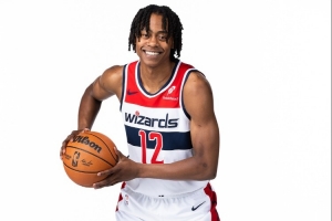 上半場(chǎng)比賽,奇才今年6號(hào)秀特雷-約翰遜發(fā)揮不錯(cuò),進(jìn)攻端里突外投很敢打,命中率也不錯(cuò)。
