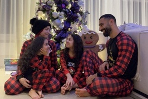 薩拉赫全家一起在家中度過圣誕,圣誕樹很是顯眼,女兒的衣服上還印有“圣誕快樂”的字樣。