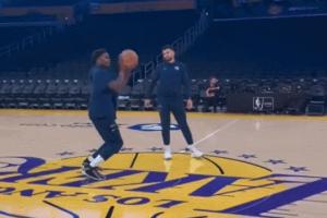 在對陣湖人的賽季揭幕戰(zhàn)最后時刻,庫里接小佩頓傳球用超遠(yuǎn)三分殺死了比賽懸念。