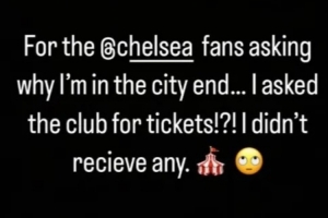 喝水哥在觀看比賽時(shí)將現(xiàn)場(chǎng)照片發(fā)布在了社媒上,他被部分切爾西球迷指責(zé)和曼城球迷坐在一起觀看了這場(chǎng)比賽。